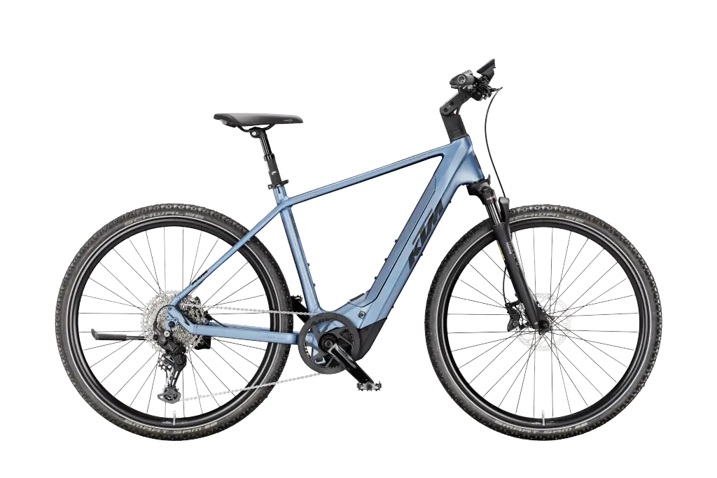 KTM MACINA CROSS CX 810 H 46 Férfi elektromos crosstrekking kerékpár STEEL BLUE MATT színben