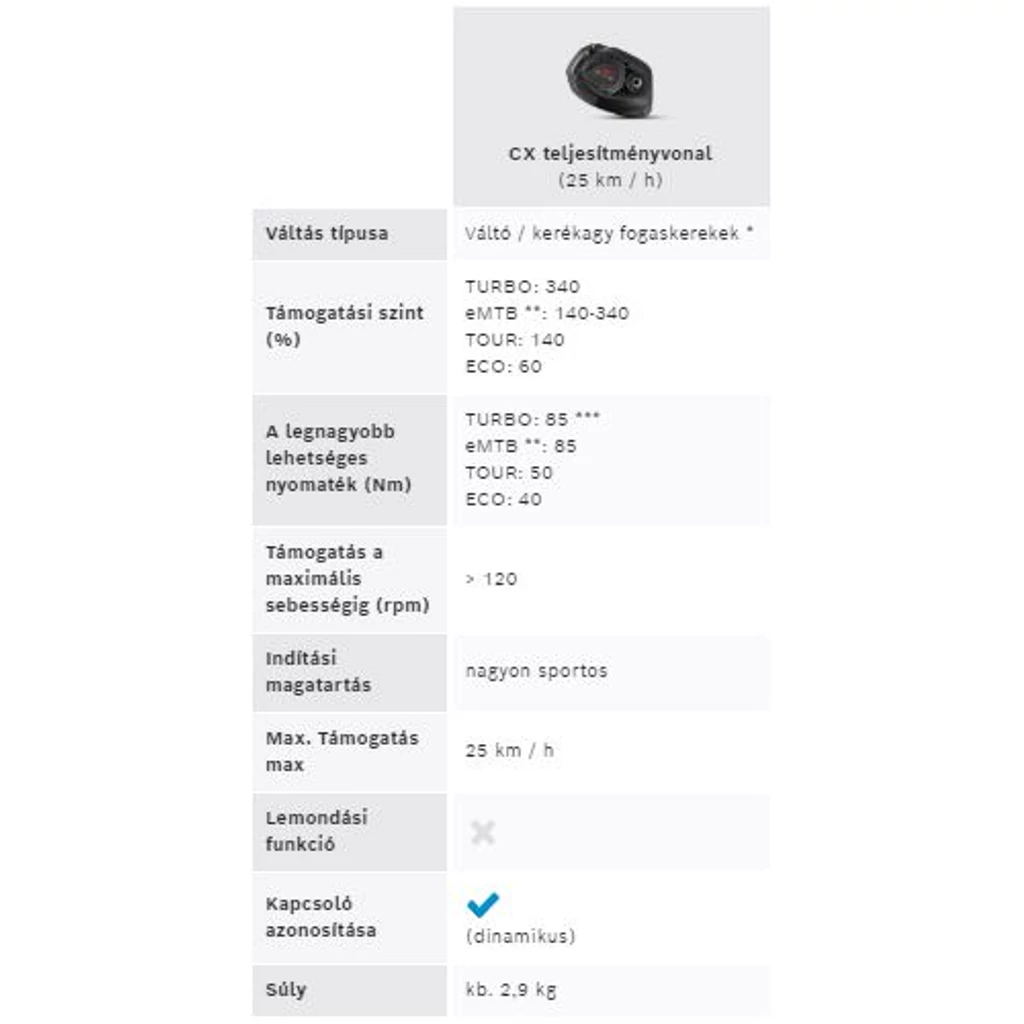 | MOTOR | Bosch PERFORMANCE CX Gen.4 - 25km/h / 85Nm |