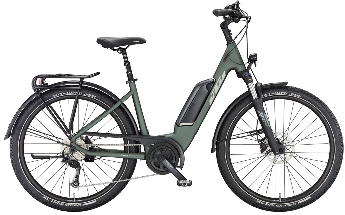 KTM MACINA GRAN P510 MOSS GREY MATT EASY ENTRY 2023 UNISEX ELEKTROMOS TREKKING KERÉKPÁR