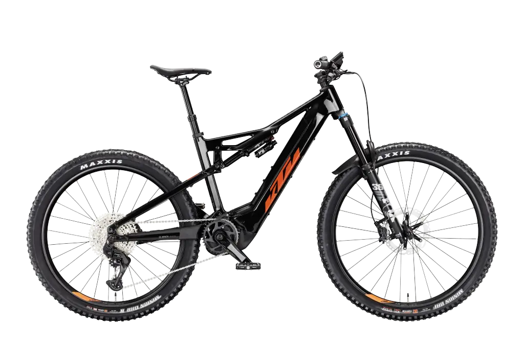 KTM MACINA LYCAN 771 FLAMING BLACK (SPACE ORANGE) FÉRFI ELEKTROMOS ÖSSZTELESZKÓPOS MTB KERÉKPÁR 2022