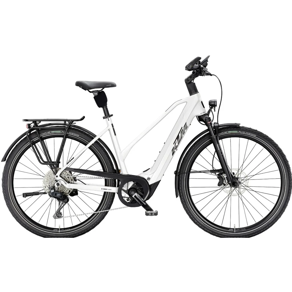 KTM MACINA STYLE 820 TRAPÉZ WHITE (BLACK+RED) 2025 NŐI ELEKTROMOS TREKKING KERÉKPÁR