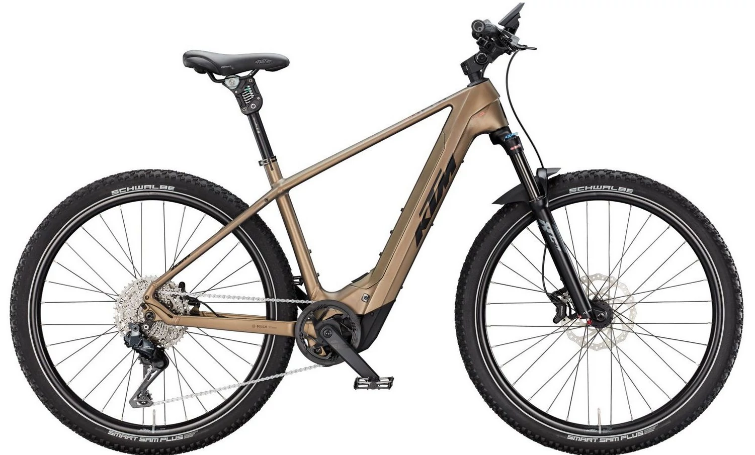 A KTM Macina Team XL nemcsak XXL vázméretben kapható, de extra stabil is. A megerősített kerekek akár 178 kg maximális össztömeget is biztosítanak . Az erőteljes 5. generációs Bosch Performance Line CX motornak köszönhetően a KTM Team XL továbbra is úgy tekerhető, mint egy igazi E-MTB. A hatalmas, 800 Wh-s PowerTube akkumulátor ugyanolyan méretű, mint maga a kerékpár. A Kiox 500 kijelzője is nagy, így optimális áttekintést nyújt menet közben. A Shimano Cues Di2 11 sebességes váltó terhelés alatt is tökéletes váltást biztosít, minimális kopással. Az elektronikus vezérlésnek köszönhetően a rendszer tehermentesíti a láncot váltás közben, és így csökkenti a kopást. A KTM Macina Team XL 2025 jellemzői -E-MTB merev vázas, nagyobb embereknek -A rendszer súlya legfeljebb 178 kilogramm -Extra megerősített kerekek -Bosch Performance Line CX Gen.5 - 85 Nm -Bosch PowerTube 800 Wh-s akkumulátor – kivehető -Bosch LED távirányító Kiox 500 kijelzővel -Előre telepített Bosch ConnectModule -elektromos Shimano Cues Di2 sebességváltó Auto-Shift funkcióval